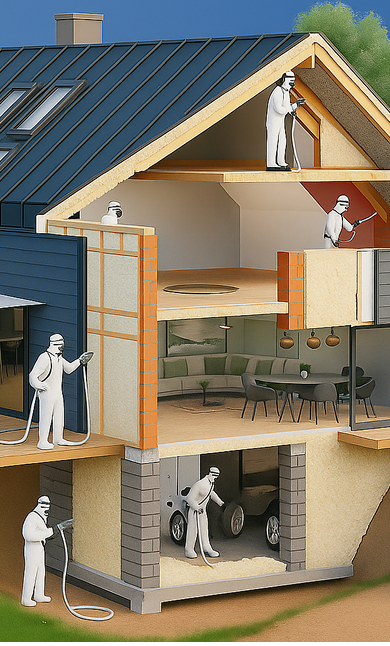 Over the past 30 years, spray-on insulation systems have developed significantly. This modern insulation system is widely used in energy-efficient construction, both in single-family and multi-family residential buildings, industrial construction, and agriculture.
